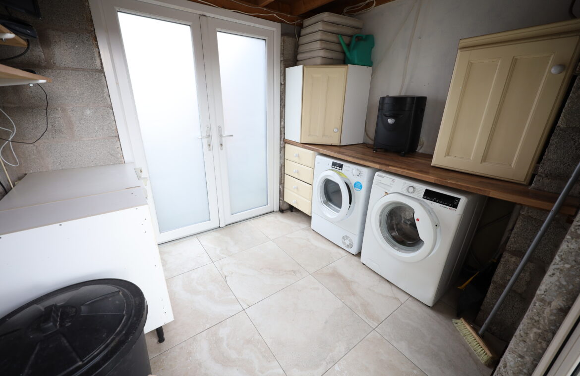 Ceramic tiled flooring. Countertop. Provision for washing machine and dryer.