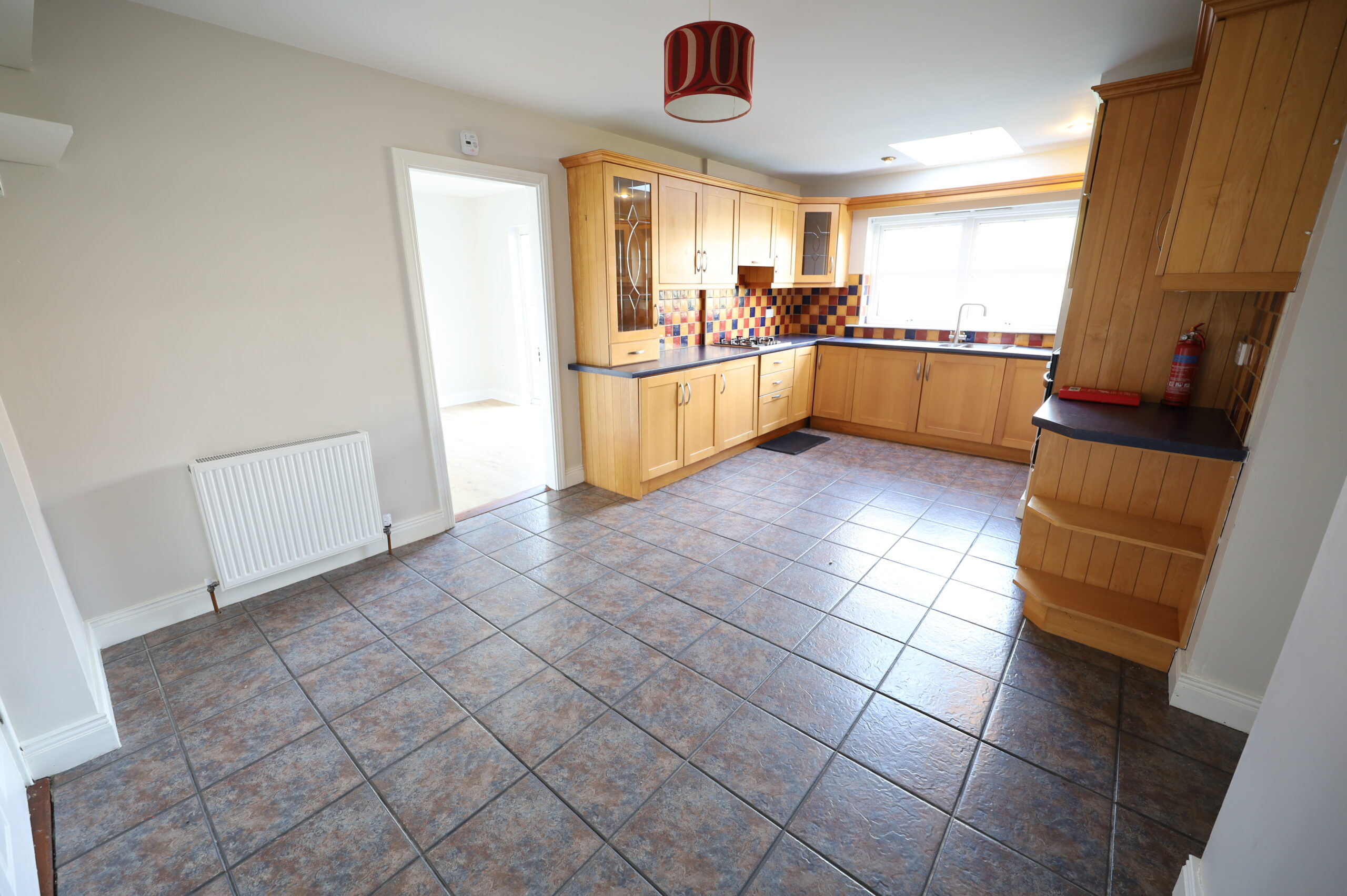 Ceramic tiled flooring. Extensive array of maple fitted kitchen base and wall mounted units. Bowl and a half stainless steel sink. Integrated oven and gas hob. Wall mounted unit with beautiful display units, wine rack, integrated pull out canopy extractor hood. Velux roof light giving excellent light. Family room off.