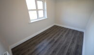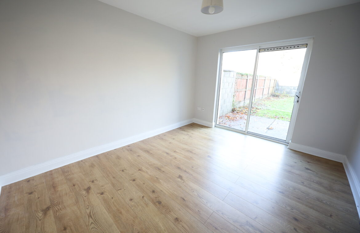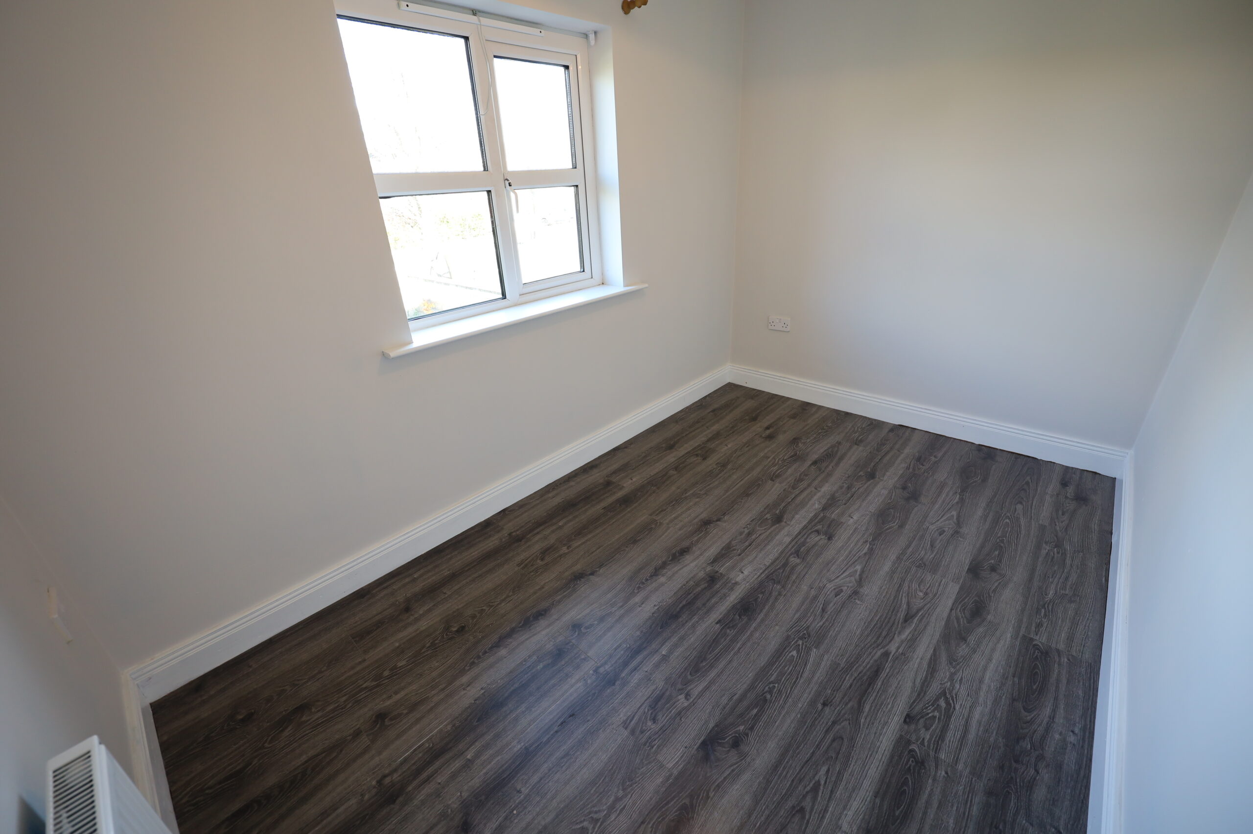 Quality laminate flooring. Double glazed white aluminium sliding door to large rear garden.