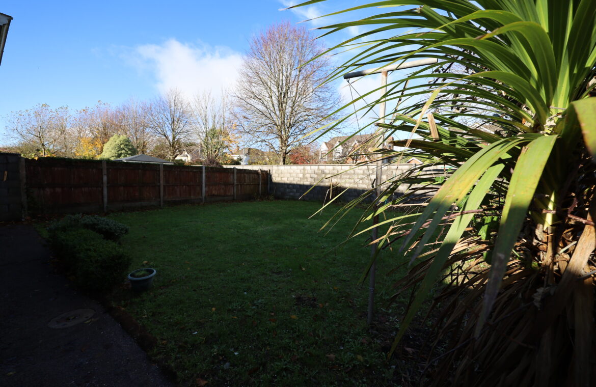 Unusually large rear garden not overlooked. Side access with gate. Large front garden with concrete driveway and lawn.