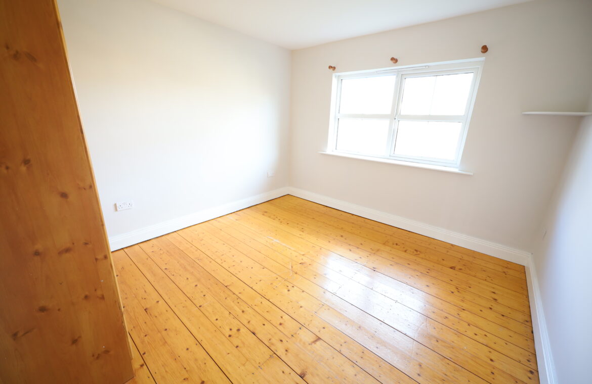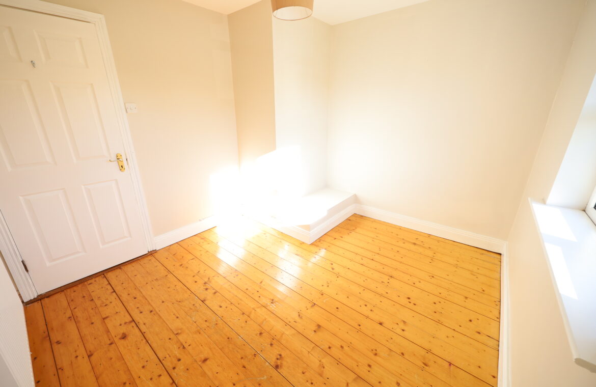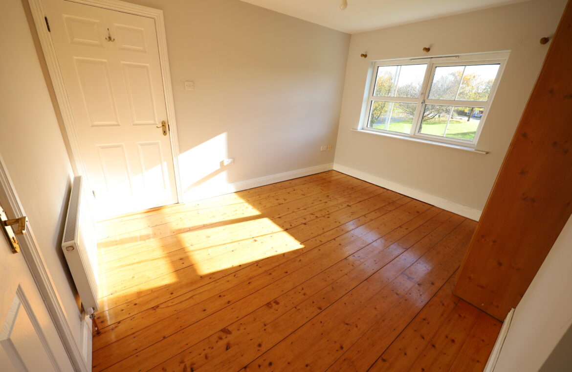 Pine varnished flooring. Fitted wardrobe, one double one single, floor to ceiling.