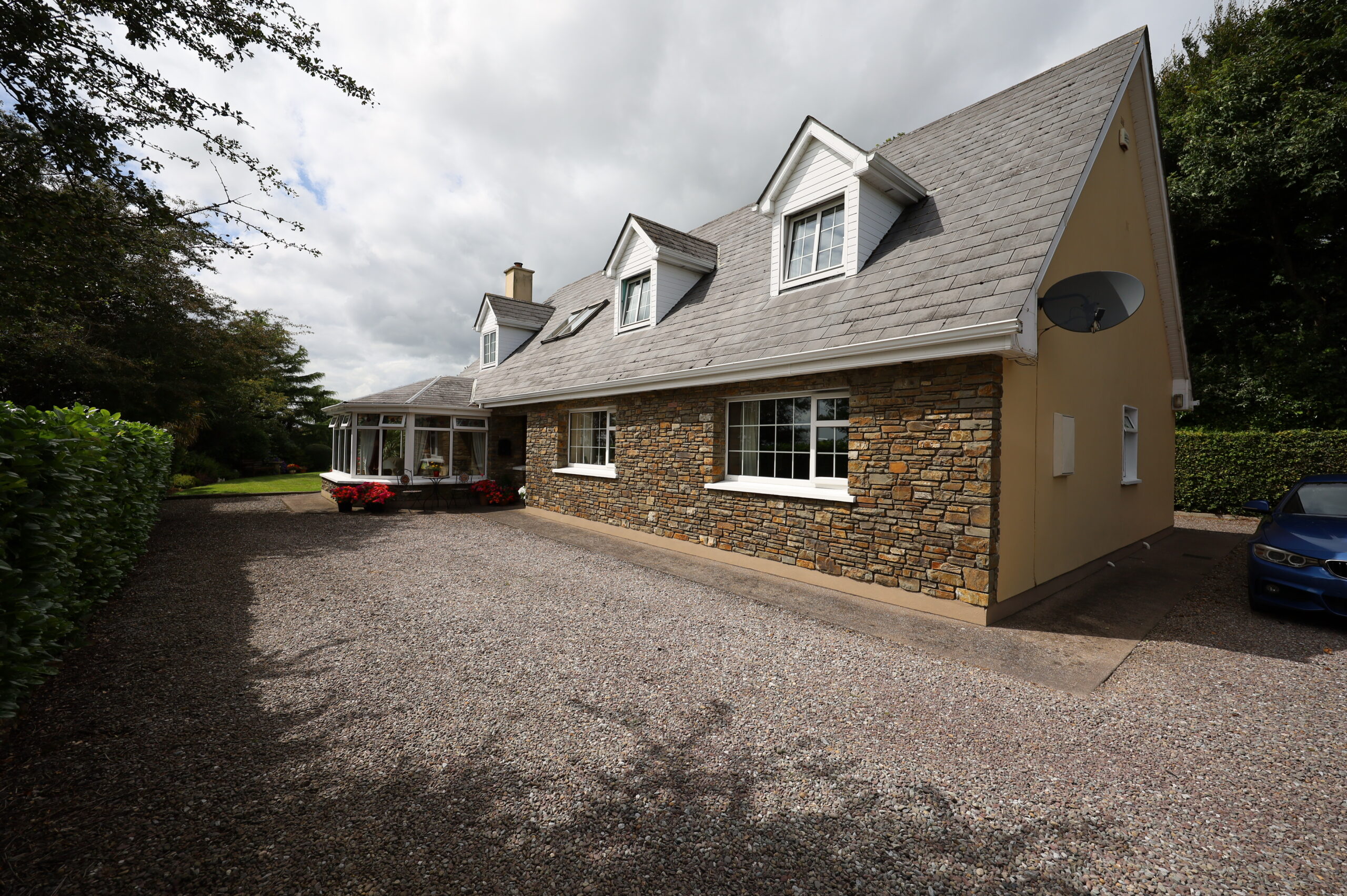 New composite double glazed front door to reception hall. Reception hall with ceramic tiled floor. Carpeted stairs to fist floor. Spacious landing. Quality laminate flooring. Pine banister and balustrade. Attractive fitted units, closet and chest of drawers.
