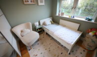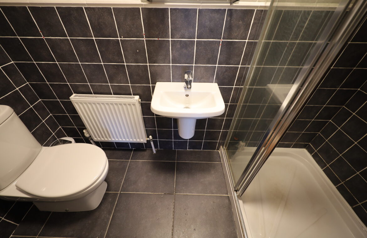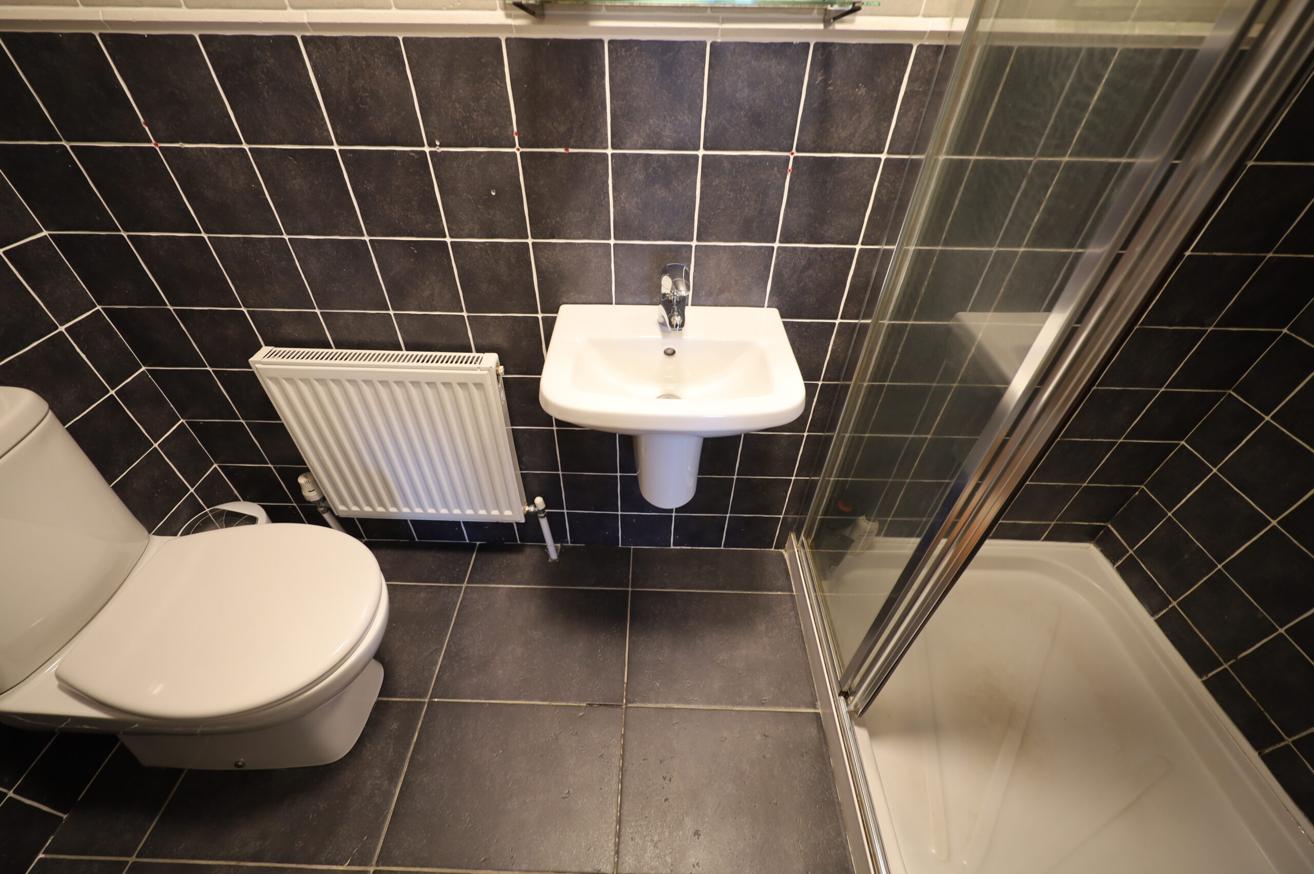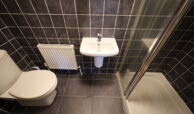 Ensuite with tiled floor and beautifully tiled walls. Contemporary suite of dual flush toilet, wall mounted wash hand basin with mono block chrome tap. Shower enclosure fully tiled with sliding shower door and electric shower unit.