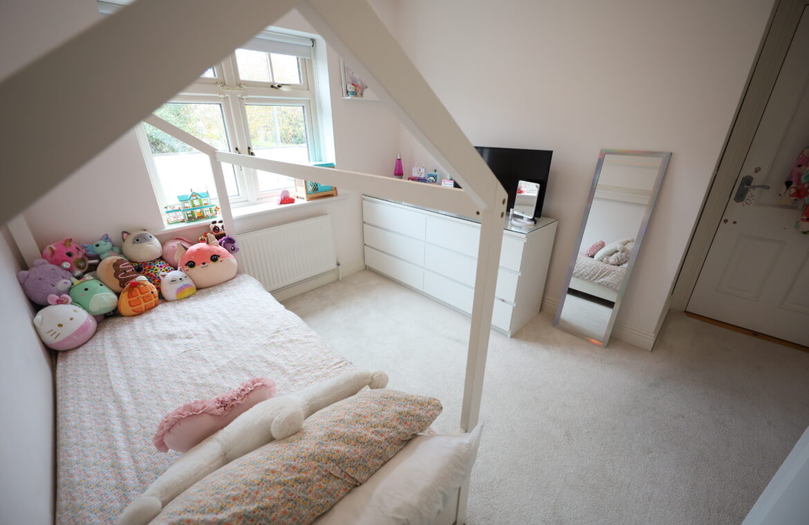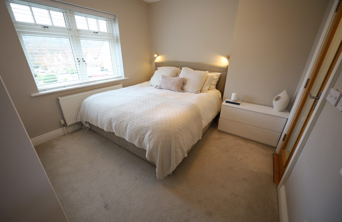 Carpeted. Fitted wardrobes, one double and a single, floor to ceiling.