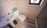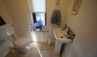 W.C. with white suite of toilet, wash hand basin and pedestal, hot and cold taps, tiling over and tiled floor. Window.
