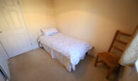 Ensuite with tiled floor and walls throughout. White suite of dual flush toilet, wash hand basin and pedestal, hot & cold taps. Shower enclosure with electric shower unit and glass shower door. Window.