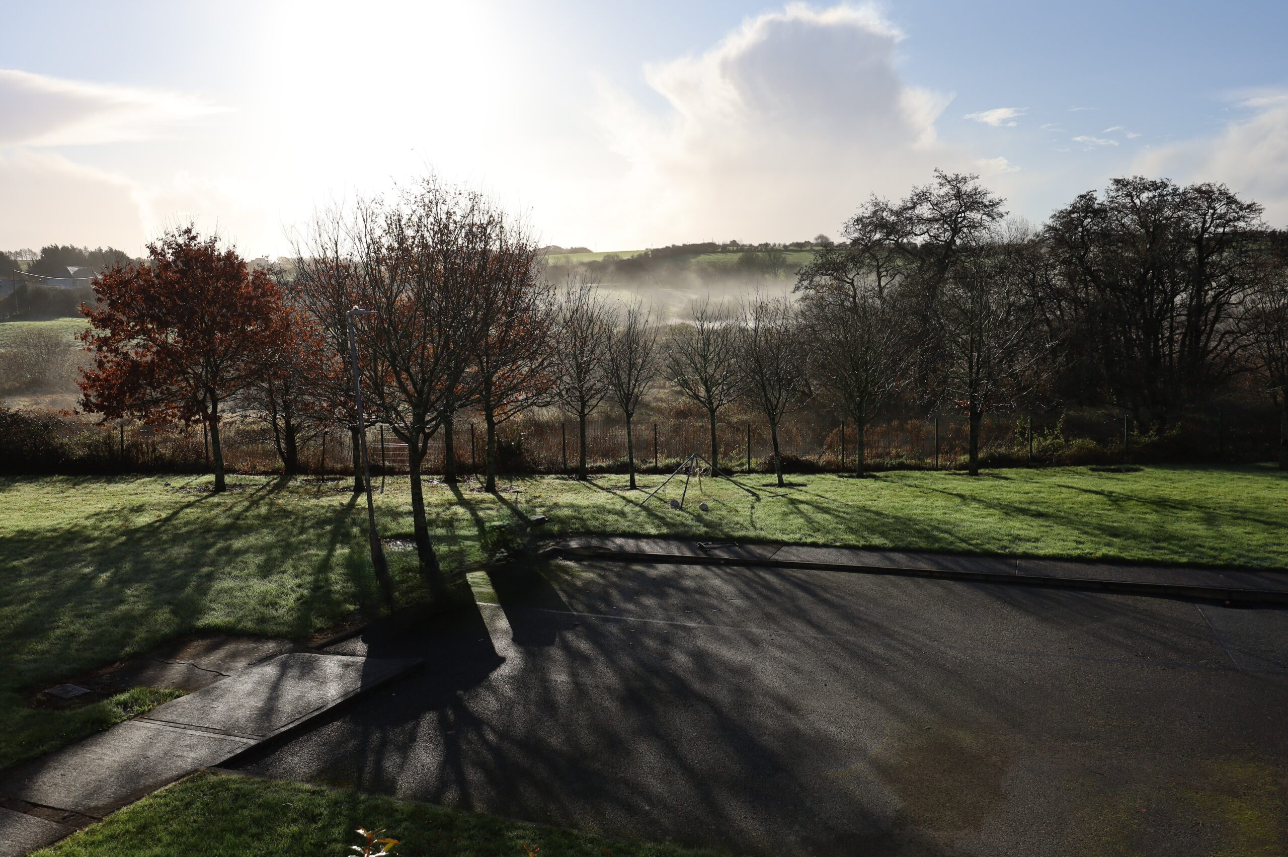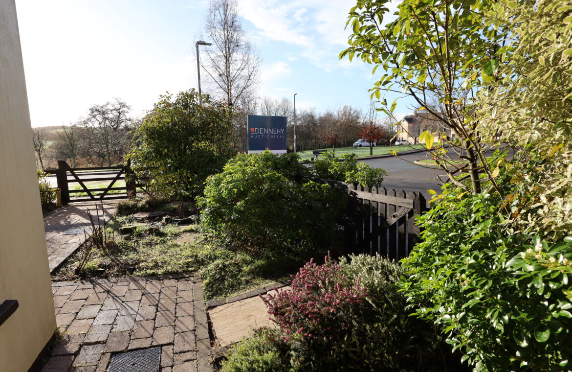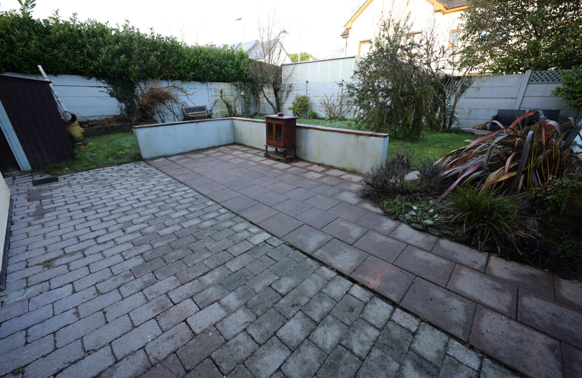 Unusually large attractive rear garden, laid out with cobble lock flagstones and flagstone patio and lawn. Selection of shrubs, grasses and trees. Steeltech garden shed. Excellent space at side of residence with big side garden with gate and cobble lock pathway. Front garden with array of shrubberies and cobble lock pathway. Property overlooks landscaped open space with beautiful views beyond of surrounding countryside.