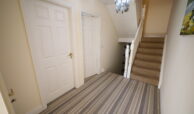Composite, insulated front door to reception hall. Reception hall with semi-solid maple flooring. Radiator cover. Carpeted stairs to first floor. Large W.C. off.