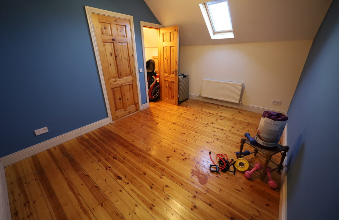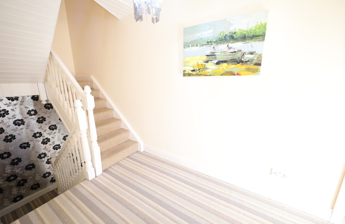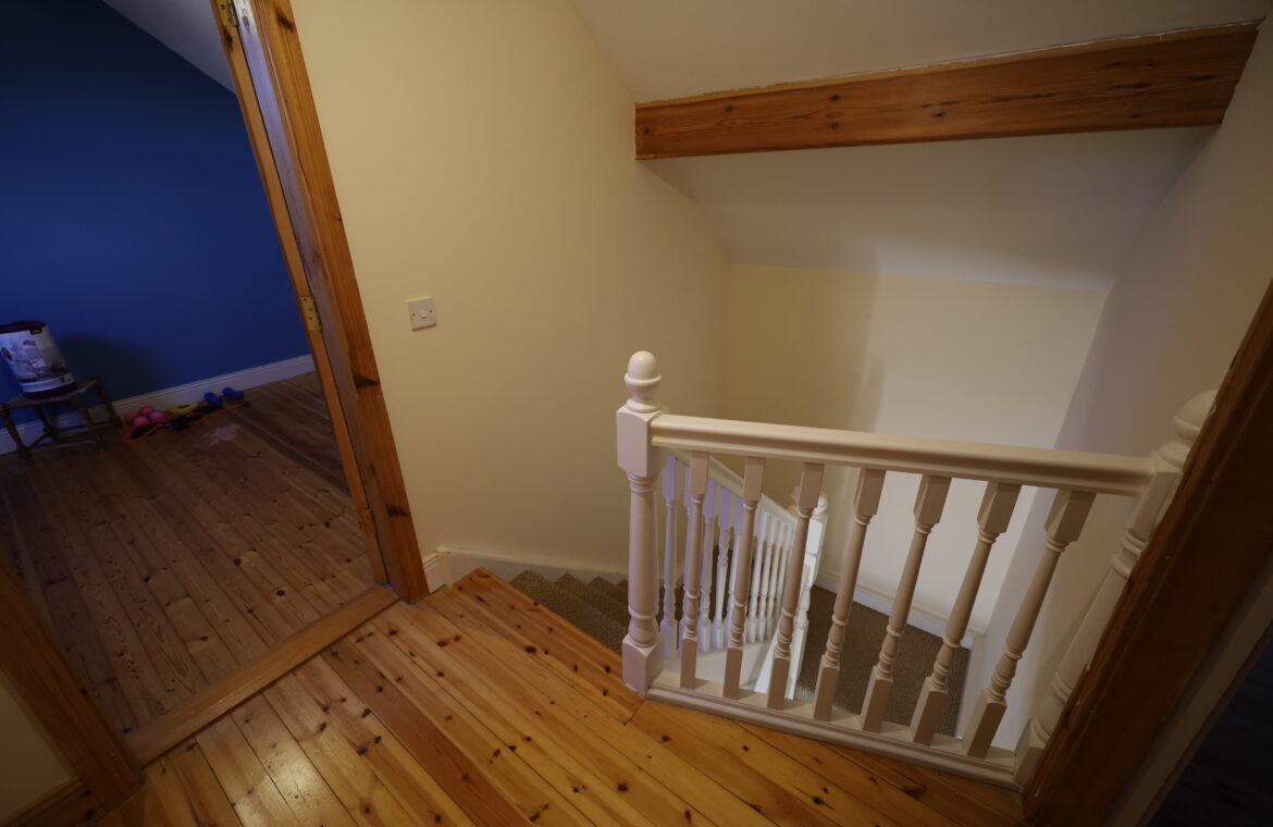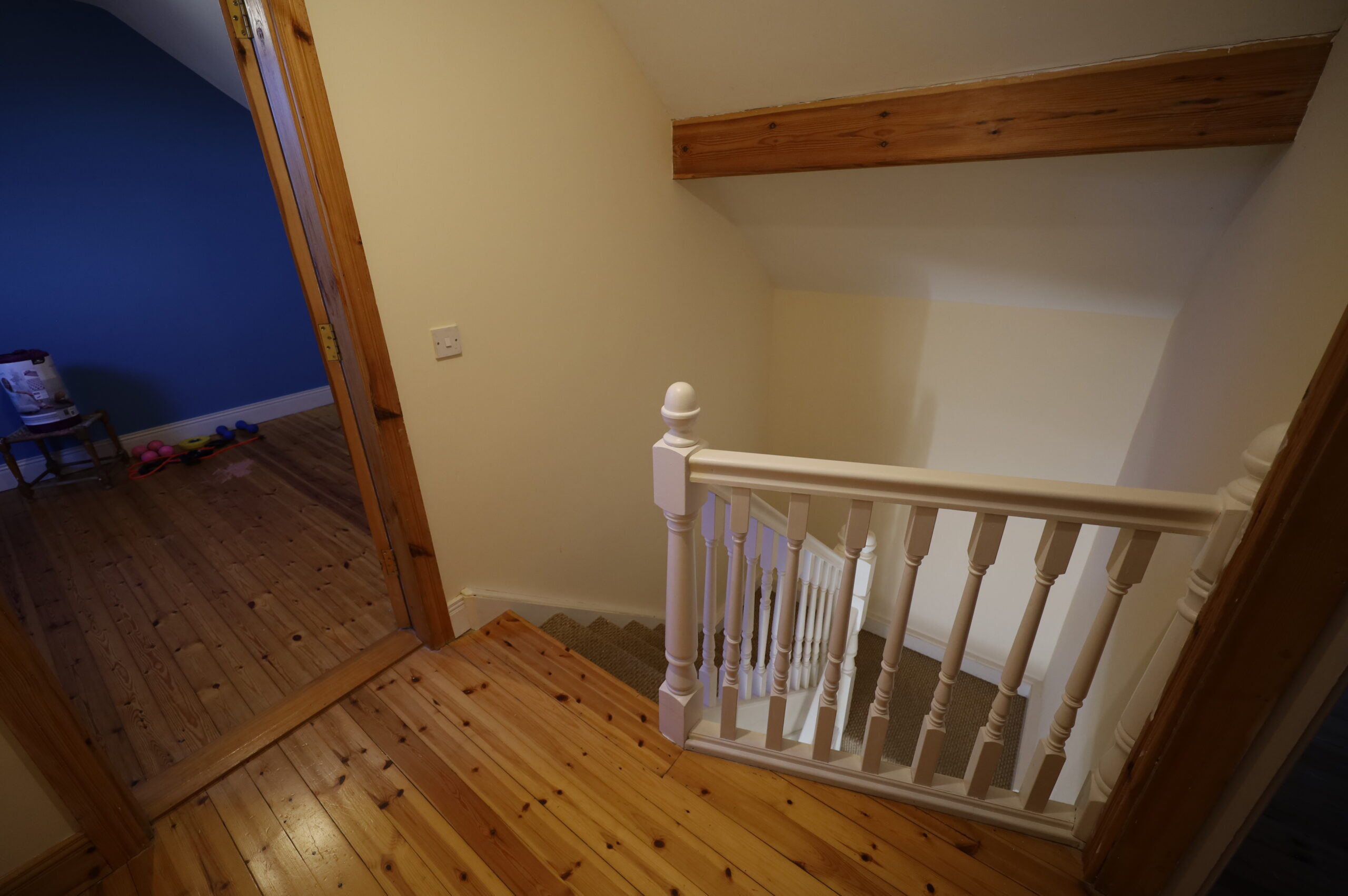 Attractive staircase to second floor, attic conversion with white painted turned spindles and banister. Spacious landing with pine doors to all rooms.
