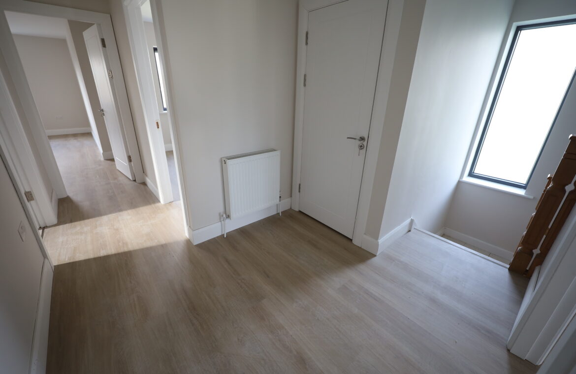 First floor with large landing. High quality oak style laminate flooring. Large walk in linen closet.