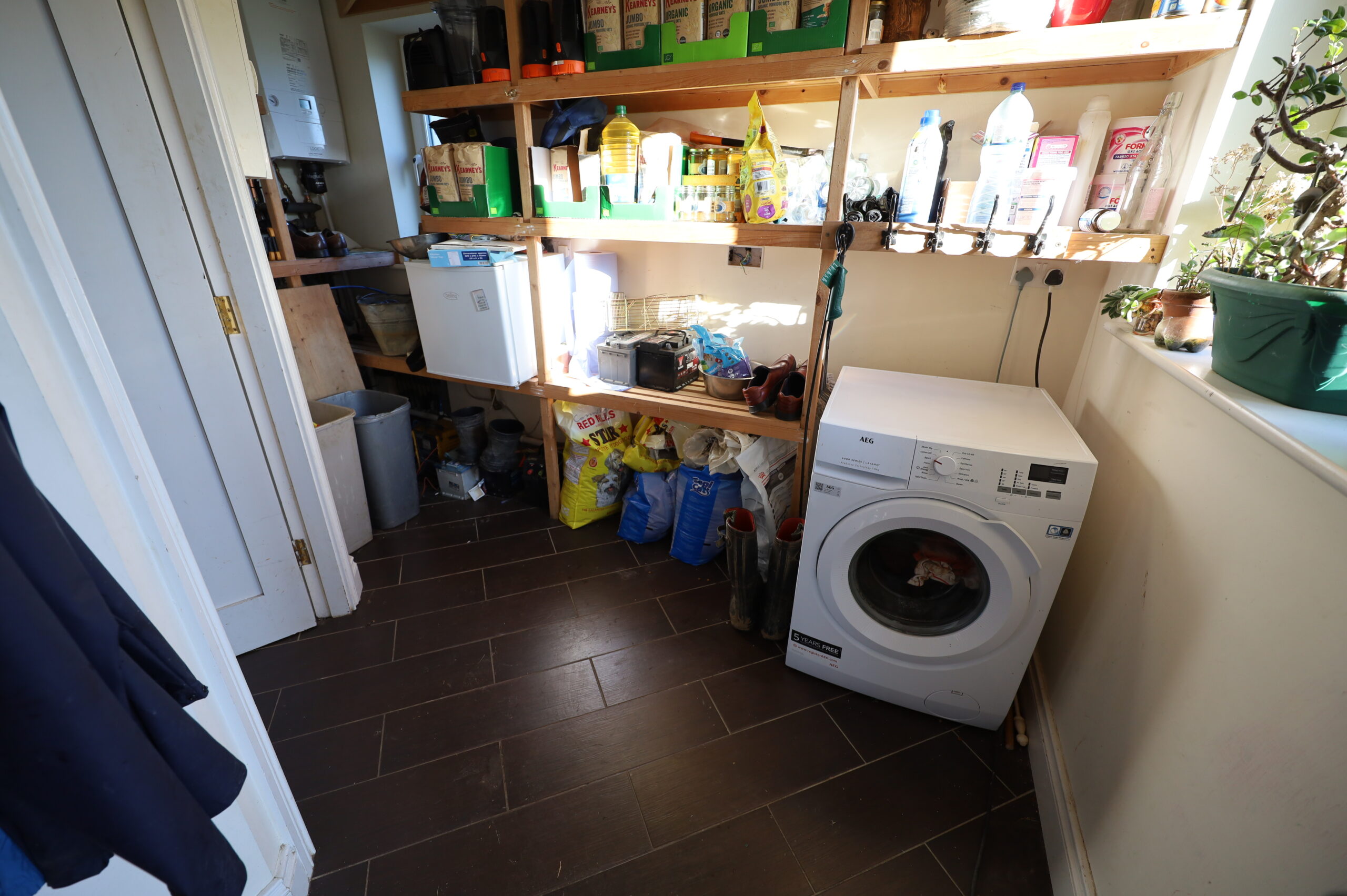 Large utility with ceramic tiled floor. Wet room/shower off.