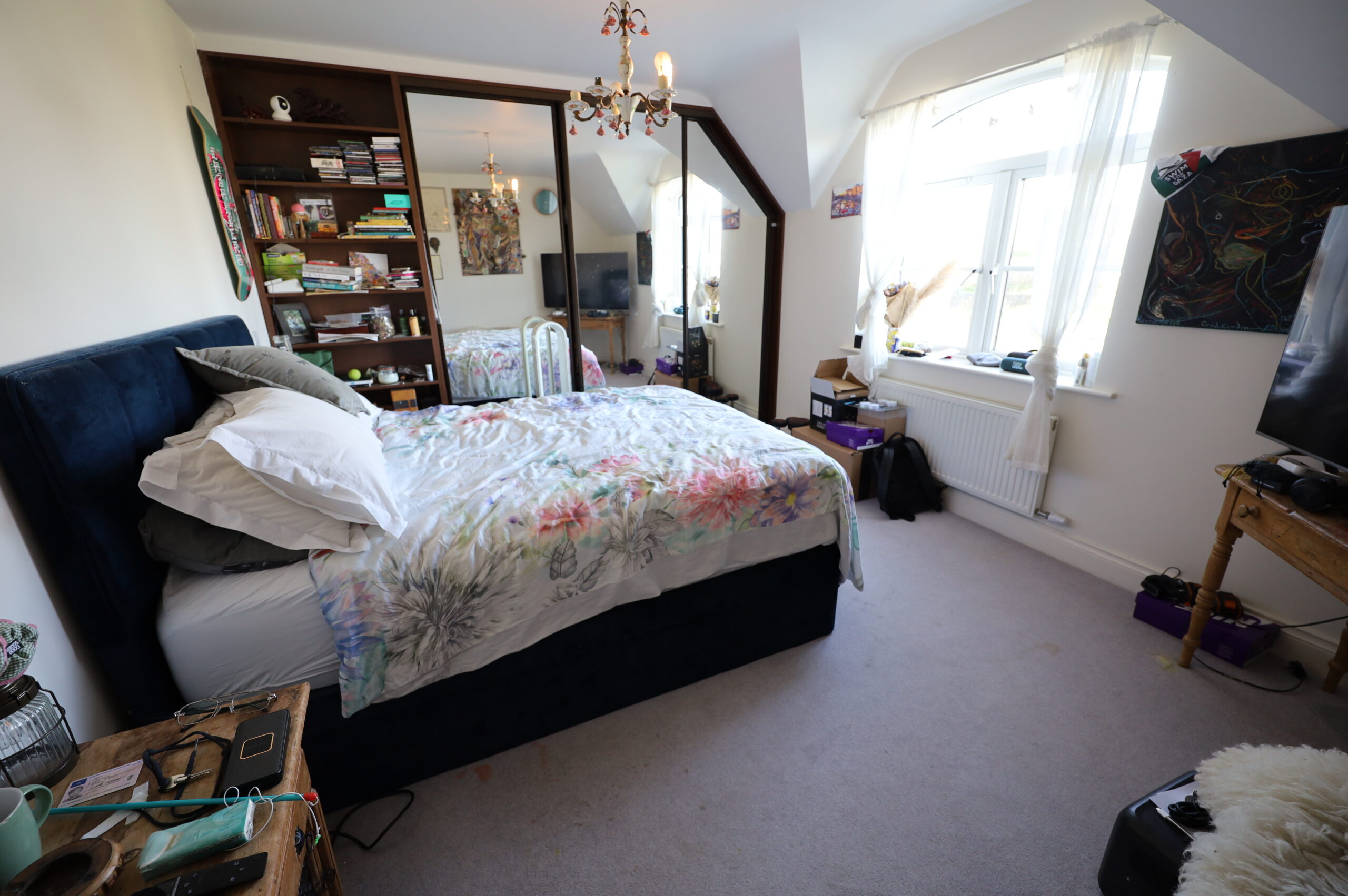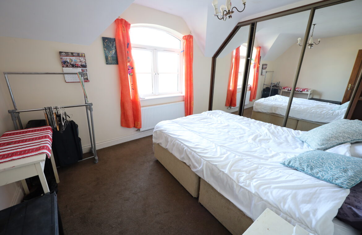 Carpeted. Fitted wardrobes with slider, mirrored doors, wall to wall, floor to ceiling.