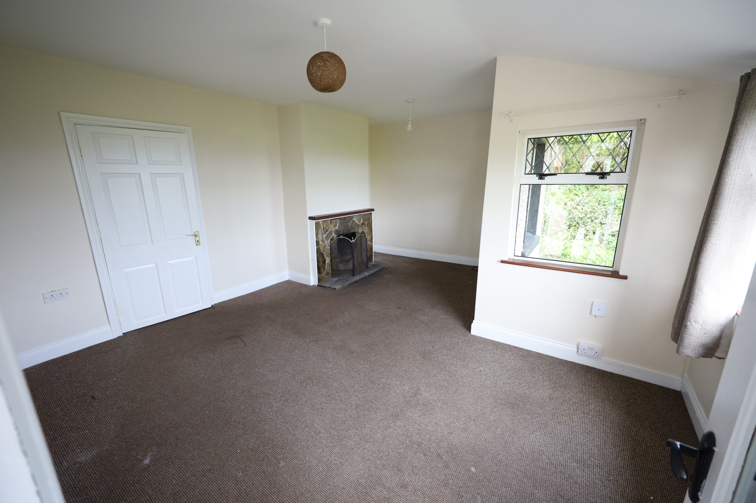 Carpeted. Open fireplace with stone surround. Main Bedroom Off. Door to inner hallway.