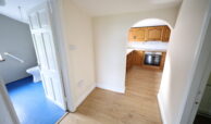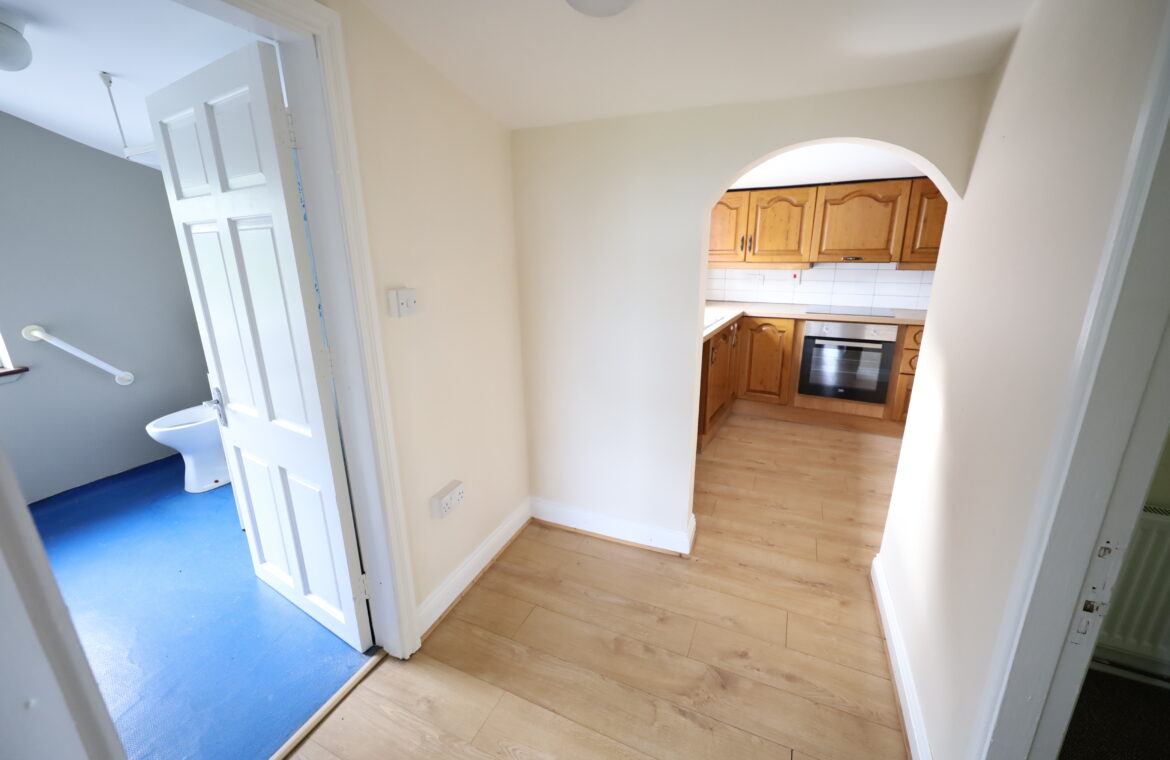 Inner hallway with arch to kitchen/dining room. Bedroom and shower room off.