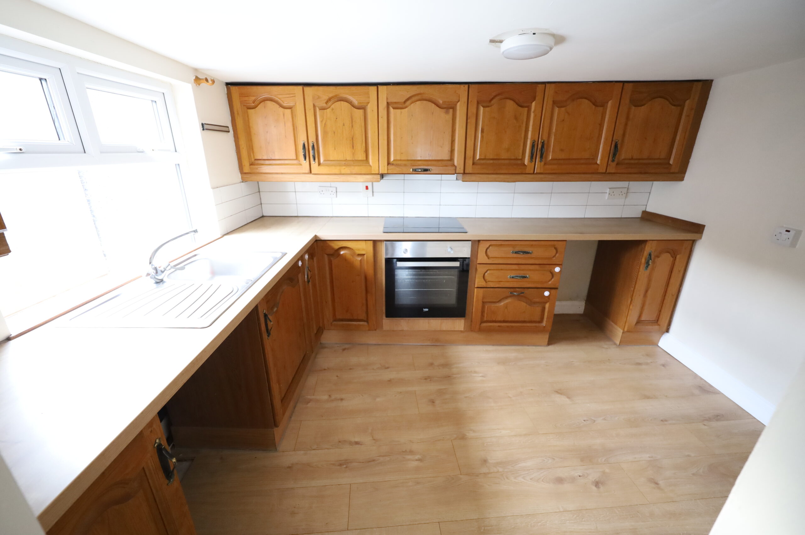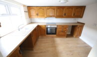 Quality laminate flooring. Attractive solid oak fitted kitchen with large array of base and wall mounted units. Base units include under counter electric oven, ceramic hob, single drainer stainless steel sink with attractive tiling over worktop. Wall mounted units with integrated extractor hood and pull out canopy. Georgian style door to large utility.