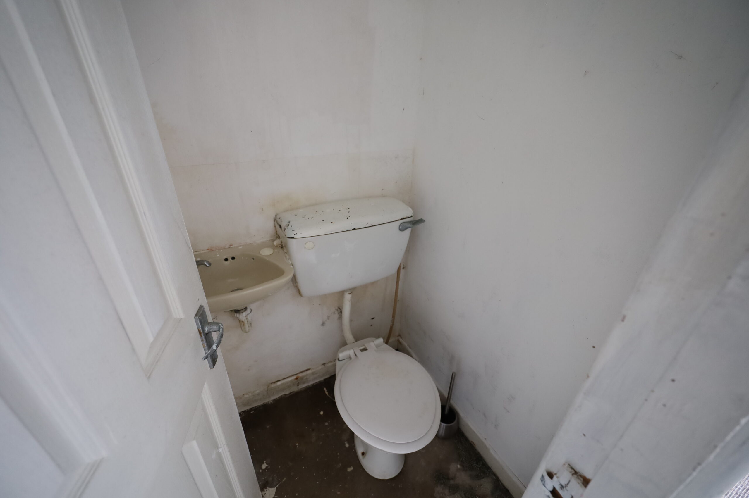 W.C. with toilet and wall mounted wash hand basin. Please note roof requires repairs as it is leaking.