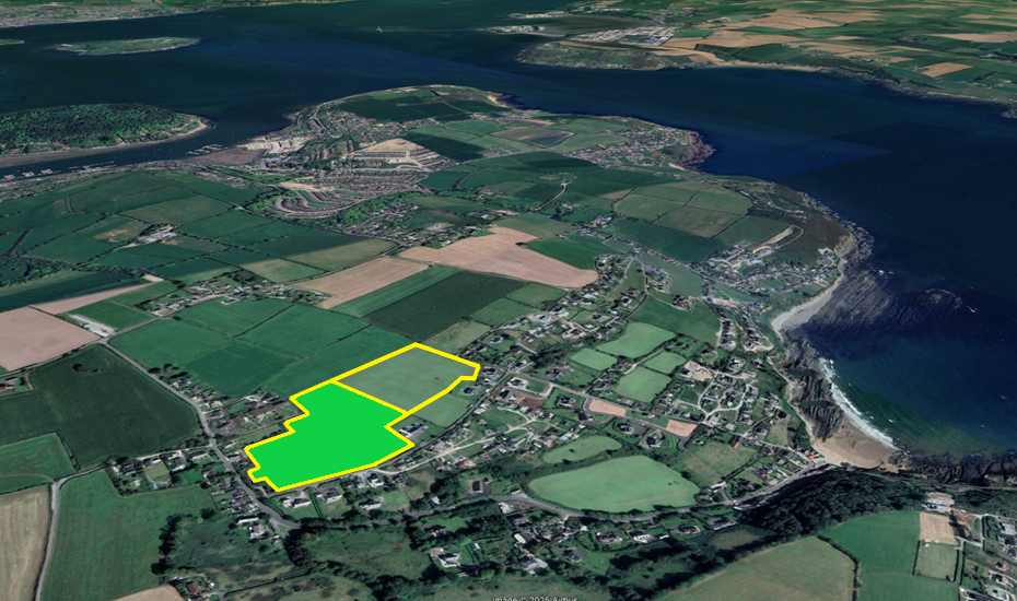 Dennehy Auctioneers are delighted to offer rare opportunity to purchase parcel of coastal land comprising of approximately just over 6 Hectares (just under 15 Acres) with significant road frontage and stunning views of Corks outer harbour. The land is gently sloping (virtually level) and south facing with free draining, top quality soil. The property boasts significant potential and has approximately just under 200 m. of road frontage on a by road with approximately 38 m of road frontage on the R612 which is the main road leading to the very popular and attractive sandy beach of Myrtleville approximately 800 m away. It should be noted that approximately 3.39 Hectares (8.37 Acres)(marked in green) are currently inside the development boundary of Myrtleville. The balance of the land being zoned agricultural. The land inside the development boundary proposes the tantalising prospect of possible residential development with mains water in the locality, the locality is without the benefit of mains sewer. All residential properties in the locality are serviced by individual septic tanks or proprietary treatment systems for the disposal of sewage. Mains electricity on roadside. Access to the land is via a single farm entrance on the by road currently. The property is being sold as is and not subject to planning permission.
