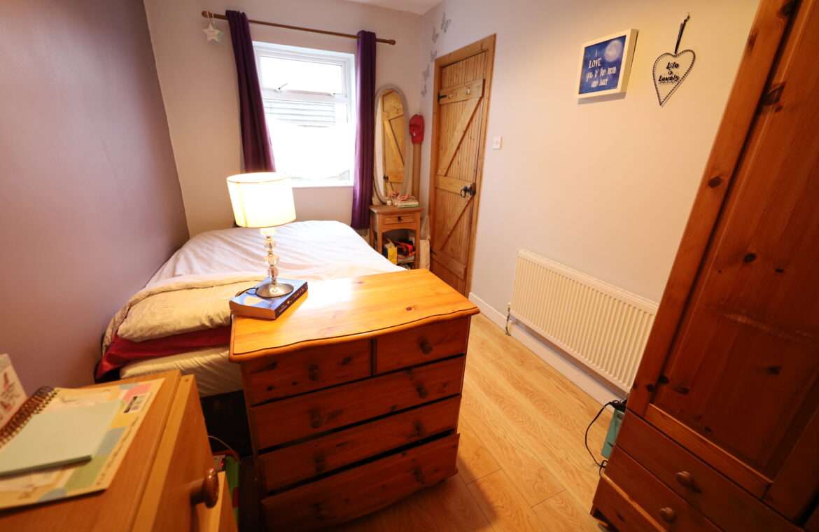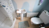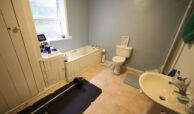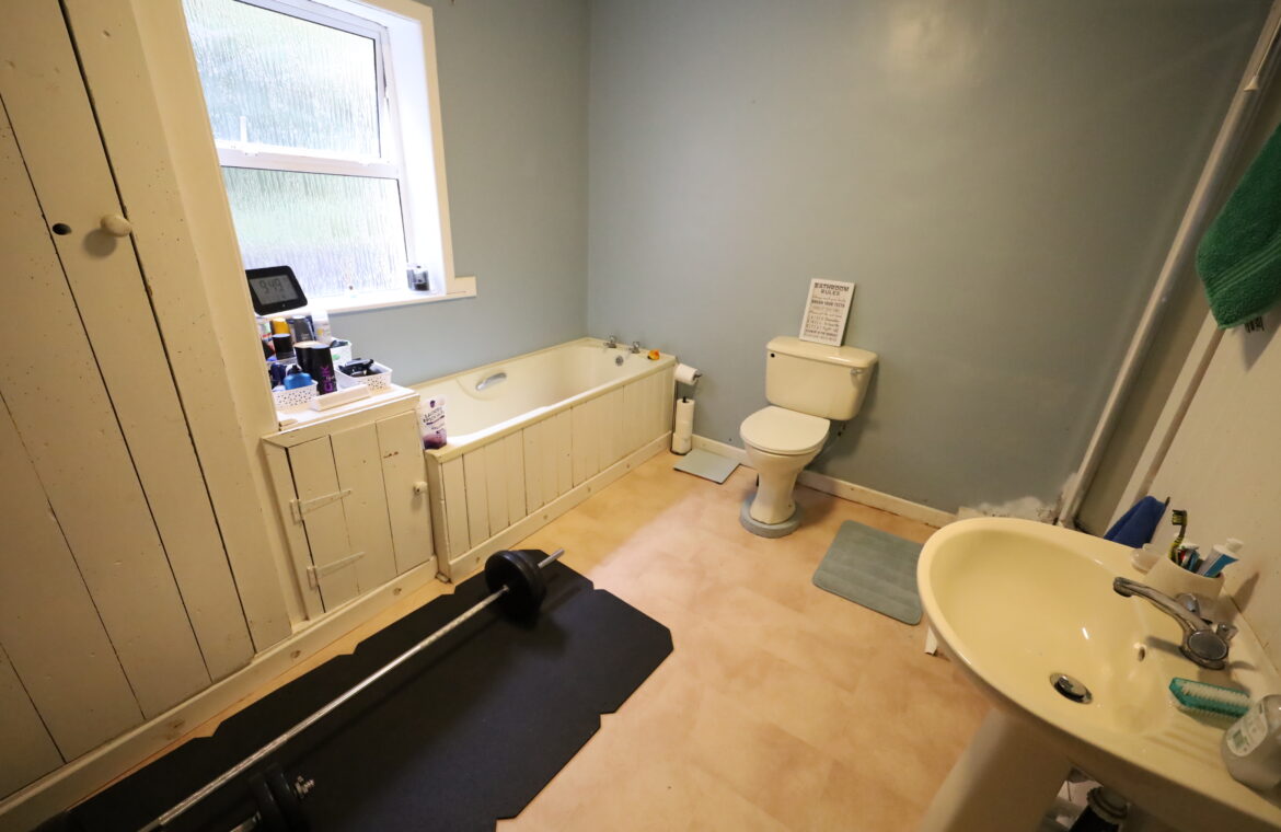 Vinyl flooring with white suite of toilet, wash hand basin and pedestal. Bath. Separate walk in shower with bi-folding doors, tiled walls and electric shower unit. Hot press battened out for airing, copper cylinder and dual immersion.