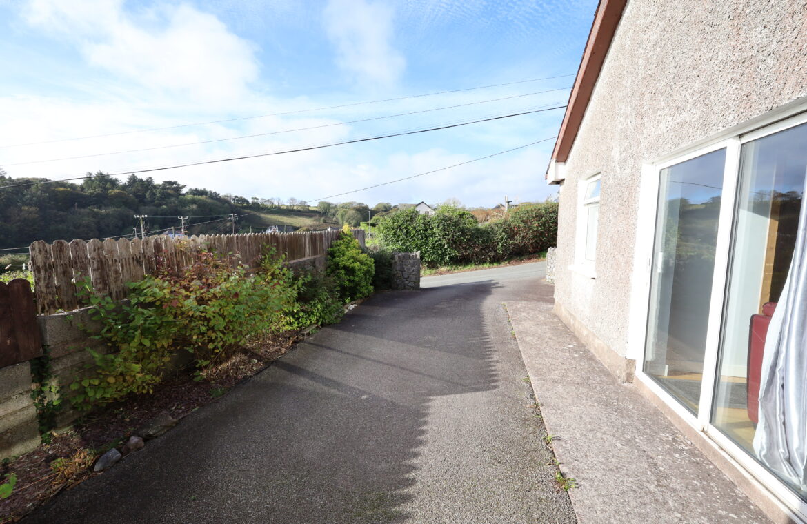 Lawns, patio areas, tarmacadam driveway enclosed by natural limestone walls and pillars with provision for gates. Wooden garden shed. Excellent parking with space for three cars, turning space.