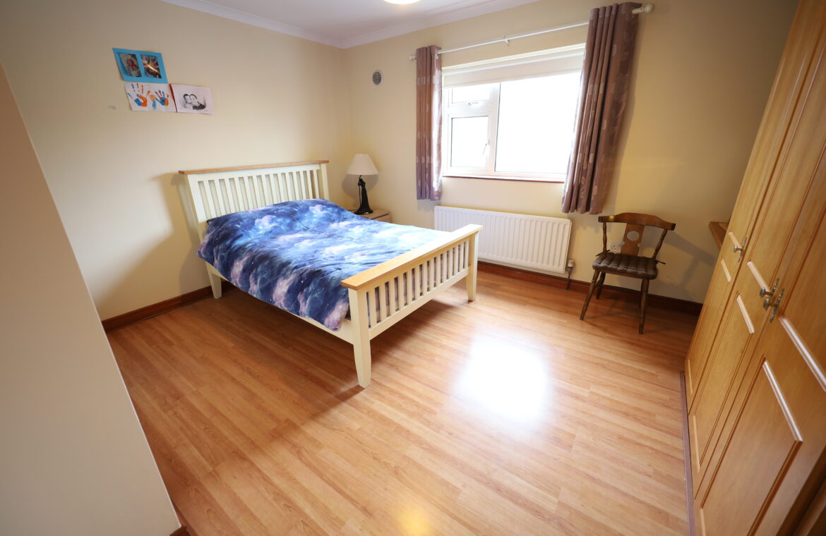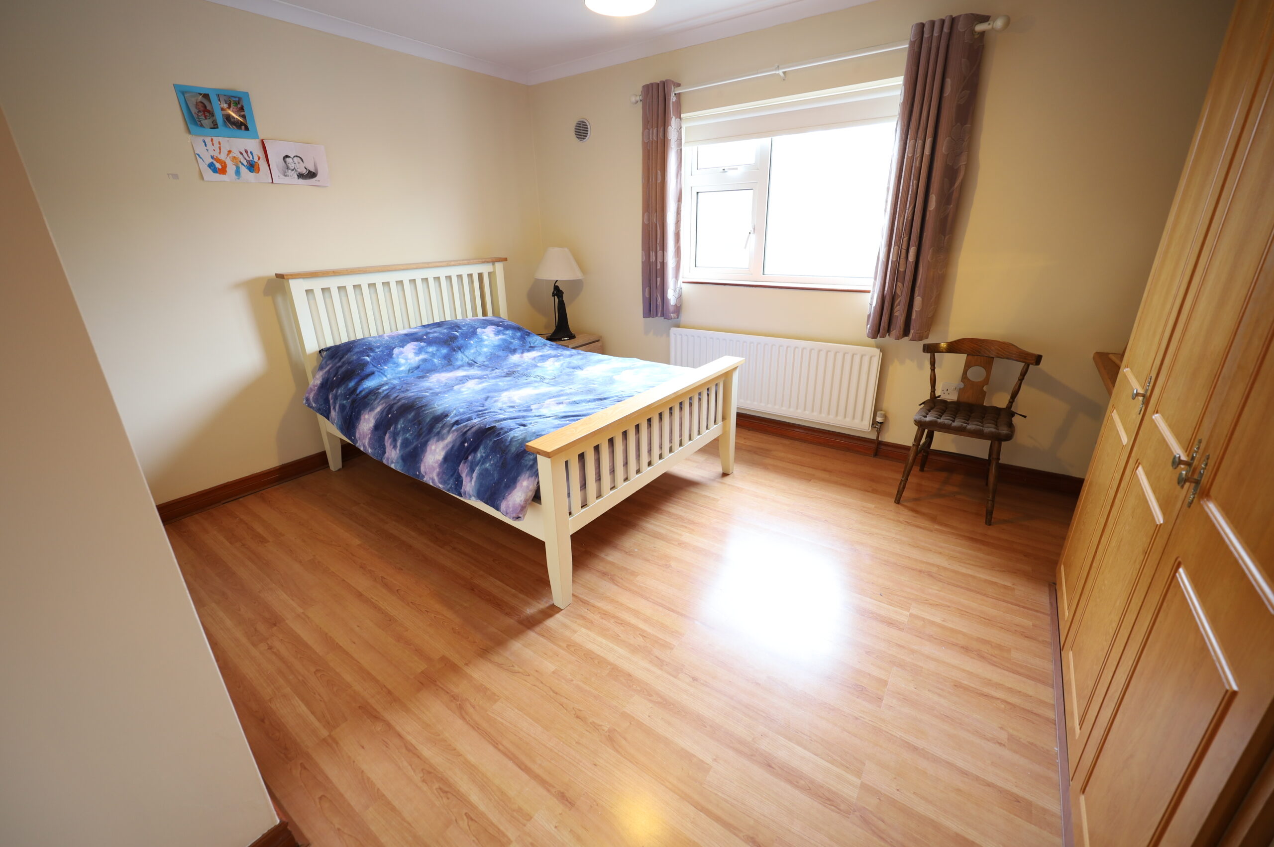 Quality oak laminate flooring. Fitted wardrobes, two doubles and chest of drawers.