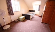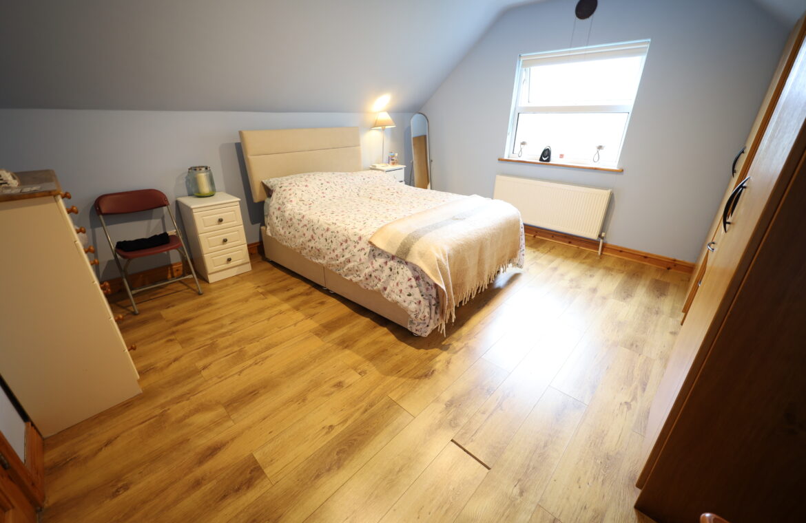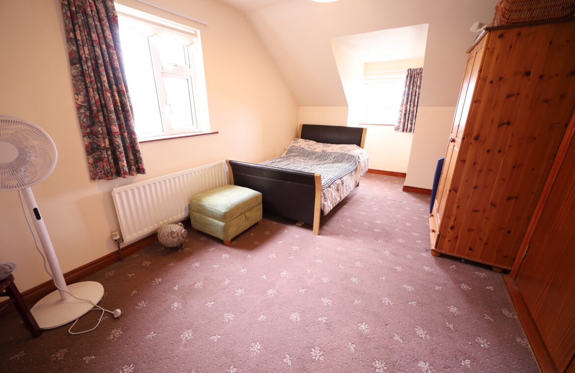 Carpeted. Dormer window and gable window. Free standing wardrobe included.